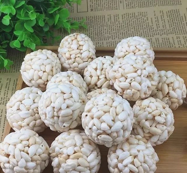 麥芽糖在鍋里慢慢熔化成糖稀,婆婆不時用筷頭挑一下,直到可以拉很長的糖絲兒了,就倒米子進(jìn)去,快速翻炒,讓米子和糖稀融合在一塊兒,趁著熱時趕緊捏圓,大致成型的先放在鍋里,搭著熱氣,等所有的米子和麥芽糖都捏成圓球,最后再來一個個捏緊捏漂亮,就算完成整個制作了。