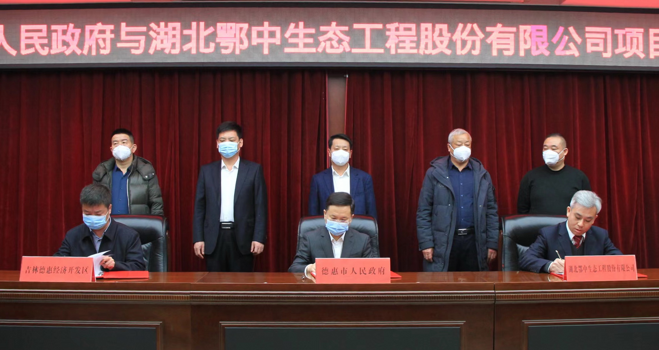 12月12日,吉林省德惠市人民政府二樓會議室,鄂中生態副總經理常云與德惠市人民政府市長劉宏、德惠市經濟開發區黨工委書記、管委會主任付井奎簽訂了《投資協議書》,德惠市市委書記申洪業出席簽約儀式。至此,鄂中生態東北基地正式落戶吉林省德惠市經濟開發區。