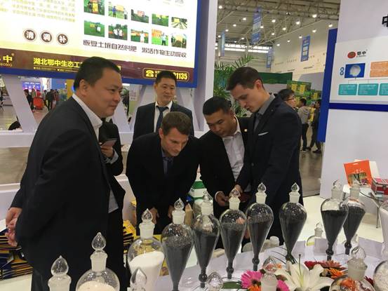 展會現場,鄧君清還向眾多經銷商介紹了鄂中生態的生物高分子復合肥系列產品。他表示,該系列產品是中國首款生物高分子復合肥料,是農民用得起的新型環保增效肥,具備了“通、改、抗、提”等優勢特點。