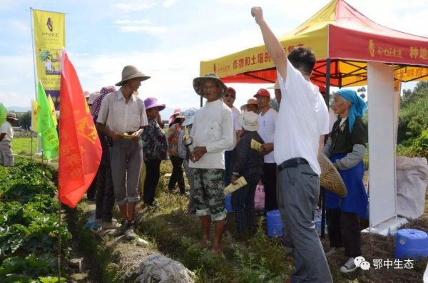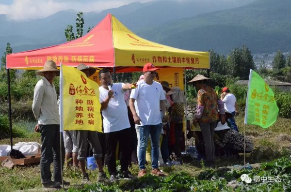 鄂中仟金方營銷已完成有效的傳播做廣度階段,如何聯動示范田、觀摩會、田頭農民促銷會做深度?推進終端有效市場覆蓋率?9月5日,在云南省大理市大理鎮陽和村。云南分公司經理蔡建新率大理州、寶山、紅河州、德宏片區中醫養護隊隊員及代理商、零售商,大理鎮陽和村及周邊龍竹村、關莊村種植大戶100余人參與示范田觀摩會并聯動田頭農民促銷會。