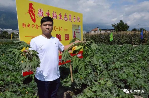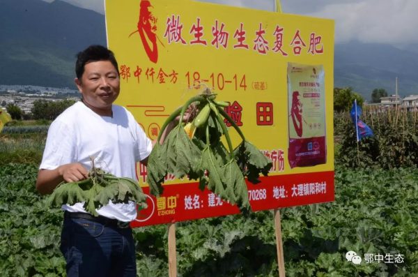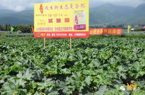 云南市場經理蔡建新和農化師周忠雄現場觀摩分析后總結:西葫蘆示范田果實坐瓜率高,化瓜少,外表鮮嫩而有光澤,不易損傷,瓜肉綠白色,肉質致密,形狀好,無畸形瓜,品質好,比對照田西葫蘆長3-6厘米;成熟期可提前5-7天,維生素C含量高,賣相好。單瓜重5斤左右,比對照田西葫蘆重1-2斤左右;根系發達,須根多,養分吸收多,植株抗逆性強,延緩了植株衰弱期,沒有脫肥現象;同時仟金方微生物生態復合肥將土傳的病殘體清理到80%,預防了病菌擴散,植株生長健壯,增加了土壤中的抗生菌,抑制了病原菌的生長,增強了抗病能力;能有效預防白粉病,病毒病,銀葉病等;常見病害較往年和對照田減少30%,減肥增效提質。
