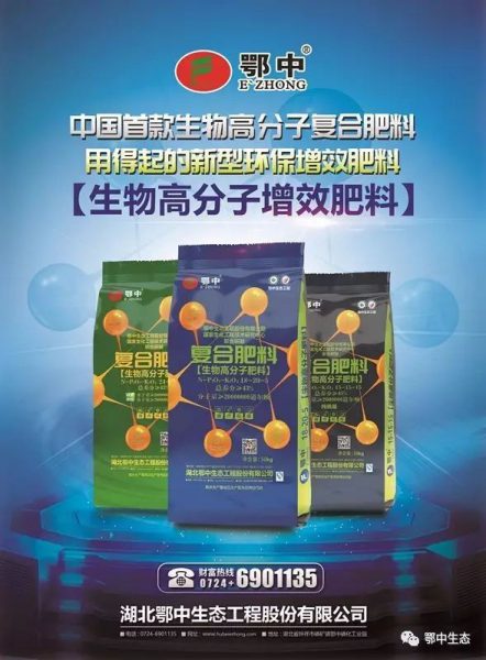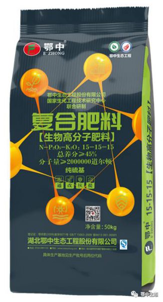 生物高分子復合肥料是由鄂中生態工程股份有限公司與國家生化工程技術研究中心聯合研發,在常規復合肥中對肥料進行改性,根據不同肥料加工工藝和不同作物需肥要求,定制化添加不同劑型及不同分子量的生物高分子肥料助劑而形成的新型功能型增效復合肥產品。是中國首款生物高分子復合肥料,農民用得起的新型環保生態增效肥料。