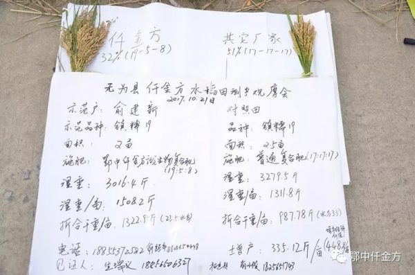 安徽無為縣晚稻測產觀摩會:再次見證鄂中仟金方減肥增效的傳奇故事!