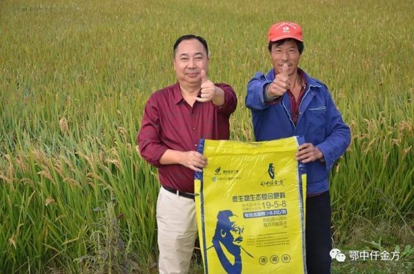 中南大區(qū)總經理李九稽總結分析介紹:鄂中仟金方是把無機養(yǎng)分、有機質、微生物菌群及復合內驅因子有機結合于一體的綜合集成科技成果,體現無機化學肥料、有機肥料以及微生物肥料的綜合效果,是當前農作物的首選肥料。鄂中仟金方肥料能夠利用空氣中的氮,通過有益菌生長代謝產生相應的酶和酸,可對土壤中難溶性的磷、鉀肥(土壤中難溶性磷肥占95%,難溶性鉀占98%)進行分解,從而成為水稻所能吸收的磷鉀營養(yǎng)。因此能夠大大提高水稻對肥料的利用率,從而減少肥料的施用量。在受災嚴重的情況下,還能保證水稻穩(wěn)產不減產,甚至取得了節(jié)本增產增效的良好效果。