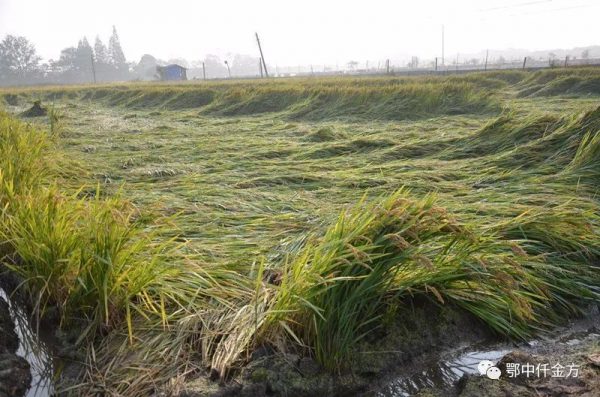 受災稻田大面積倒伏
