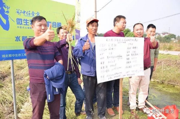 江西分公司經理徐晶介紹說:經過長期追蹤示范田,分析研究得出鄂中仟金方施用后,通過有益菌群的大量繁殖,大量有益菌群在水稻的根際形成了優(yōu)勢種群,抑制了其他有害菌的生命活動;同時分解了土壤有機物質,促進了土壤團粒結構的形成,且通過有益菌群的活動能夠疏松土壤,土壤的保肥、供肥、保水、供水及透氣性都得到良好的調節(jié)。還分解了土壤中的農藥殘留,避免殘留農藥對下季水稻產生藥害。特別是仟金方能夠持續(xù)不斷的改良土壤,2-3年就可使土壤達到生產有機稻谷的標準,且因為有益菌群能夠分解有機物為稻谷提供養(yǎng)分,所以克服了有機肥料肥效慢、單施有機肥產量低的特點。