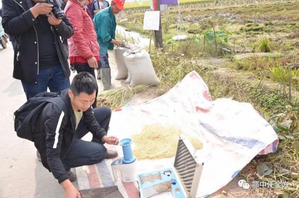 鄂中代理商范躍明測產后與專家核實數據