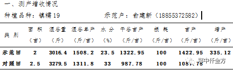 經過鄂中農化專員、農技專家多點匯總綜合測定:仟金方示范田有效分蘗數是18.15株,而對照田是15.23株,在千粒重上示范田的水稻也表現的更好。鄂中仟金方微生物生態(tài)復合肥示范田畝產(干谷)1422.95斤,對照田畝產(干谷)1087.78斤,每畝增產335.12斤,增產30.8%。科技示范戶焦瑞義將一把稻粒現場碾碎并放在嘴里慢慢咀嚼,道出用鄂中仟金方種出的稻谷含水量低,且糯米蛋白質和脂肪含量更好,如果糯米蒸熟后一定更香,營養(yǎng)價值更高,能改善口感,顯著提高糯稻的品質。
