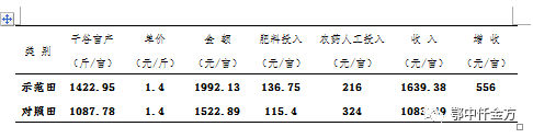 示范戶俞建新(電話:18855372582)仟金方示范田水稻(干谷)畝產達1422.95斤,對照田畝產(干谷)1087.78斤,與對照田綜合測定對比畝增產335.12斤,增幅達到30.8%。在當前水稻田普遍受災的情況下,仟金方示范田仍然比當地平均畝產量還增產210斤左右。跟對照田常規(guī)復合肥相比,每畝肥料多投入為21.35元,減少1次用藥和人工投入108元,共計少投入86.65元,減少肥料投入43.1%。按當地鮮谷市場價格(干谷)每斤1.4元計算,凈增收556元。鄂中仟金方凸顯出節(jié)本減量、增產增效、種地養(yǎng)地、防病抗病等優(yōu)良的示范效果。