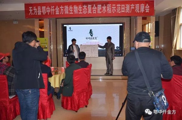 觀摩會后,又召開了鄂中仟金方微生物生態(tài)復合肥產品推介會,現場播放了仟金方的品牌故事,東南大區(qū)總經理李九稽現場講解了仟金方作用機理及在全國各地的肥效表現,示范戶俞建新現場講解仟金方施用過程,施肥技術等相關內容。見證人共同發(fā)布了測產的真實數據和肥效。隨后無為縣鄂中代理商范躍明(電話:18325370099)與零售商、種植大戶進行了座談交流。通過此次觀摩和座談,與會人員看到了鄂中仟金方肥料的品牌優(yōu)勢,極大的鼓舞了零售商推廣鄂中仟金方的信心,之前對鄂中仟金方持懷疑態(tài)度的種植大戶打消了疑慮,對鄂中仟金方有了新的認識,對水稻種植表現和市場需肥潛質有了更進一步的認識。紛紛表示鄂中仟金方今后將快速的推廣和購買。鄂中仟金方也將為糧食增產、減肥增效、提高農產品品質及農民增收做出新的貢獻,實現化肥施用量零增長目標!