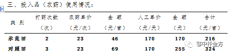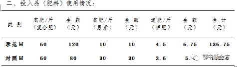 經過鄂中農化專員、農技專家多點匯總測定分析:鄂中仟金方微生物生態(tài)復合肥示范田肥料投入為136.75元/畝,農藥及人工投入為216元,共計352.75元/畝;對照田肥料投入為115.4元/畝,農藥及人工投入為324元,共計439.4元/畝。與對照田相比,鄂中仟金方示范田較少投入86.65元/畝。施用鄂中仟金方含量32%(19-5-8),對照田肥料含量為51%(17-17-17),與對照田相比,化肥減量43.1%。