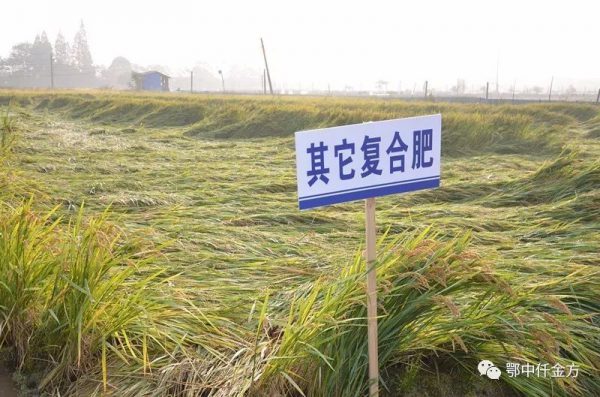 “6月25日在這里召開的水稻分蘗期觀摩會,我已經把鄂中仟金方肥料的效果展示給全國農民看了,示范田秧苗長勢喜人,根系發(fā)達,葉色濃綠、苗稈粗壯、分蘗多而整齊,今天增產豐收見證的時刻到了!”示范戶俞建新興奮地介紹說:“我標準示范田2畝(通過GPS測畝儀測定),每畝施用仟金方32%(19-5-8)60斤(基肥40斤、追肥20斤),每畝追施尿素10斤,鉀肥4.5斤;標準對照田2.5畝(通過GPS測畝儀測定),每畝施用常規(guī)復合肥51%(17-17-17)60斤(基肥40斤、追肥20斤),每畝追施尿素30斤,鉀肥3.6斤。”俞建新最后補充說明:我的示范田是鄂中生態(tài)集團免費贈送的成品肥,還全程免費贈送施肥種植技術。