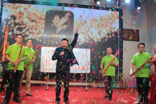 湖北浩斯特化肥有限公司總經理助理蔡建新宣布“神捕”沈丘市場啟動儀式圓滿成功