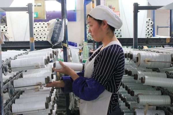 —扁絲生產(chǎn)中,班長(zhǎng)每個(gè)班都要對(duì)本班的扁絲厚度、重量、拉力強(qiáng)度等進(jìn)行檢測(cè),廠管理人員隨時(shí)抽檢。為了提高編織袋的質(zhì)量,通過添加抗氧化劑,增加抗曬抗氧化的功能,添加聚乙烯,提高扁絲韌性、抗沖擊能力。