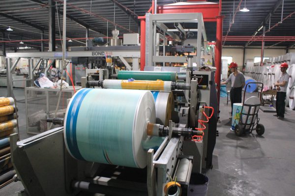 特別是過去的三年多時(shí)間,編織袋廠在公司的大力支持下,依靠技術(shù)進(jìn)步和管理提檔升級(jí),整個(gè)面貌煥然一新。該廠先后投資1000多萬(wàn)元,已經(jīng)將2米拉絲機(jī)淘汰,換成了4米的拉絲機(jī),扁絲產(chǎn)量提升50%以上;購(gòu)置單絲拉力測(cè)量?jī)x器,檢測(cè)單絲拉力;在購(gòu)進(jìn)大量新圓織機(jī)的同時(shí),對(duì)還在使用的舊機(jī)器進(jìn)行改造,增加經(jīng)緯線斷線停機(jī)功能減少?gòu)U品量;添置布卷拉力測(cè)量?jī)x器,檢測(cè)布卷質(zhì)量;將2臺(tái)老舊彩印機(jī)器淘汰,新購(gòu)3臺(tái)電腦對(duì)版套色的彩印機(jī),提高套色精準(zhǔn)度;新購(gòu)置的覆膜機(jī)采用微電腦自動(dòng)對(duì)位技術(shù),保證每條包裝袋的正反面版式準(zhǔn)確對(duì)位,相比老機(jī)器速度提高了一倍,復(fù)合效果更好;更換一臺(tái)三色印字機(jī),改造2臺(tái)印字機(jī)收袋裝置;將 3人/臺(tái) 慢速立式折邊機(jī)更換為 1人/臺(tái) 快速臥式折邊機(jī);切縫機(jī)由以前的6臺(tái),增加到9臺(tái),其中5臺(tái)為后來(lái)購(gòu)置,淘汰2臺(tái)陳舊機(jī)器;將縫口機(jī)更換為超聲波轉(zhuǎn)口機(jī),取消縫口線使用;將手動(dòng)套袋更換為機(jī)器自動(dòng)套袋機(jī),大量減少人工使用。同時(shí),環(huán)保、產(chǎn)能、能效、安全上,都有極大的提高。