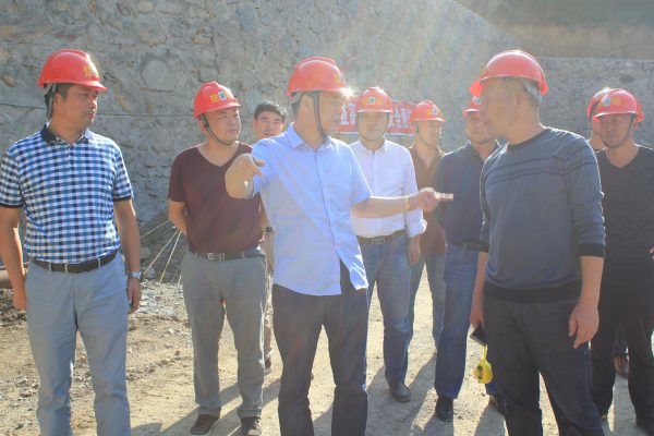工地上,彩旗招展,機械轟鳴,塔吊高速運轉;“綠色礦山、和諧礦區、誠信礦務”等巨幅標語格外醒目。在主廠房前、在輔助設施旁、在正在施工的1.35公里道路上,楊才超董事長每到一處,關心、關注最多的就是安全、工期、質量,每一個環節、每一個細節,都了解、交待得清清楚楚。