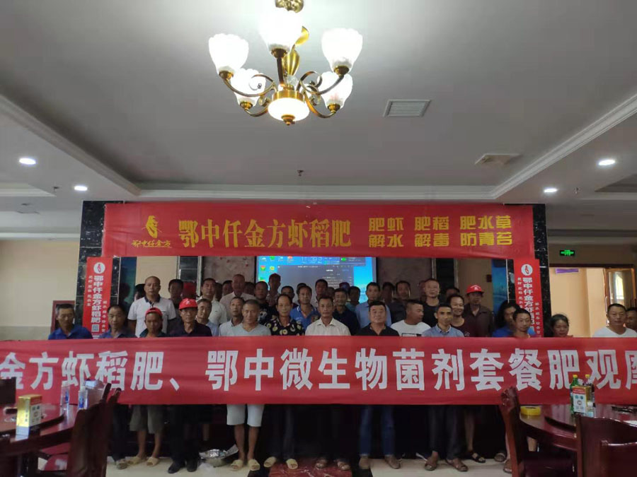 據王昌文介紹,這要感謝湖北鄂中生態工程股份有限公司的農化服務人員對他的幫助和指導。湖北鄂中生態工程股份有限公司近年來研發推出的仟金方蝦稻肥是一款能肥水、肥蝦、肥稻、解水、解毒、解殘留、防蝦病、防青苔的生物有機肥產品。該公司的農技人員幫助當地農戶建設蝦稻共作田,改善種植環境,請水產養殖專家給農戶進行小龍蝦養殖技術講課,從早期怎樣挖好標準蝦稻田,如何消毒、栽草、肥草、肥水,投放蝦種數量和比例,到中期指導蝦田防病、改底、調水、測水、肥水,通過使用該公司生產的鄂中仟金方生物有機肥料增加蝦田水中浮游生物、有益菌生長,從而增加小龍蝦產量,指導農戶6月底在蝦稻田如何移栽水稻,7月份做好水稻病蟲害防治等工作。