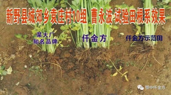 通過測產(chǎn),還見證了西芹根系本身吸收能力弱,而示范田西芹施用鄂中仟金后,根系對比更粗壯,地表毛細根較多,白根較多,須根多,根系發(fā)達,使西芹根系更深,能較好地吸收和分泌物質,促進了西芹的植株生長。對比整個示范田西芹生長期、成熟期無斑枯病、葉斑病、菌核病發(fā)生,并且少打2次農(nóng)藥;而對照田有少量的斑枯病、葉斑病和菌核病,鄂中仟金方富含的超活性微生物菌群(復方內驅因子)分泌的抗生素抑制了病原體,能有效減少土傳病害。