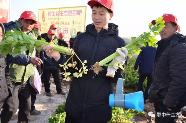 芹菜:清熱利濕,平肝健胃,可用于調味,亦用于醫(yī)藥,通常作為蔬菜食用。鄂中仟金方微生物生態(tài)復合肥減肥增效奇跡更重要的是經(jīng)得起逆勢雪災和實踐的雙重考驗,在新野縣30萬畝大棚蔬菜大多遭遇凍害,鄂中仟金方西芹示范田卻在雪災中增添了一幕堅挺健壯的新綠,表現(xiàn)出植株更健壯,抗逆性增強,有效緩解了寒冷天氣帶來的傷害。新型職業(yè)種植大戶深深地被鄂中仟金方的減肥增產(chǎn)效果所折服!豫南分公司經(jīng)理鄒應成表示:鄂中仟金方在2017年創(chuàng)造了一個又一個作物增產(chǎn)奇跡,刷新了一次又一次作物減肥增效高產(chǎn)紀錄,新野芹菜觀摩會呈現(xiàn)出來的不過是冰山一角!我們相信,一款產(chǎn)品好不好,時間是最公平的裁判,也只有真正利國惠民的產(chǎn)品,才能得到農(nóng)民朋友的信任和支持,企業(yè)才能走的更遠!今日您予我一份信任,他日我還您一個豐收!