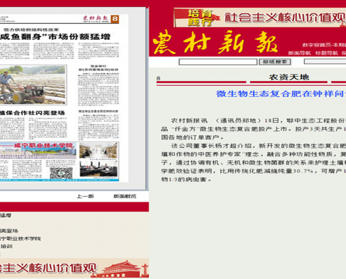 《鐘祥市政府網》、《鐘祥在線新聞網》刊出:鄂中“仟金方”微生物生態復合肥上市
