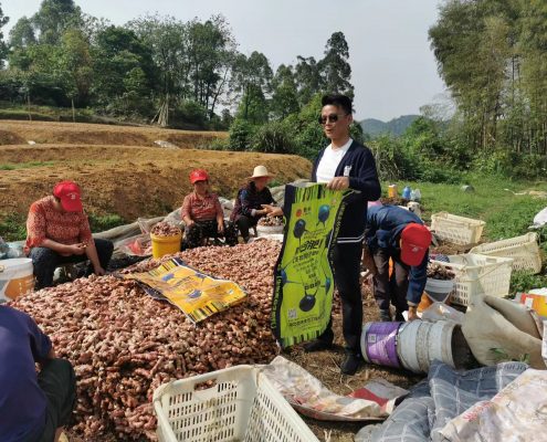 (圖為農服人員正為姜農講解鄂中高分子肥料特點、功效、用量及使用方法) 每年4月初是重慶江津區臨峰生姜開始種植的季節