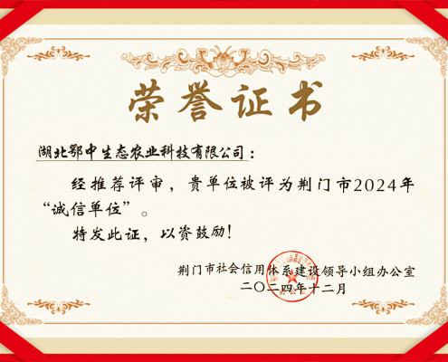 誠(chéng)以立身 信以行遠(yuǎn) 鄂中農(nóng)科獲評(píng)“2024年度誠(chéng)信單位”